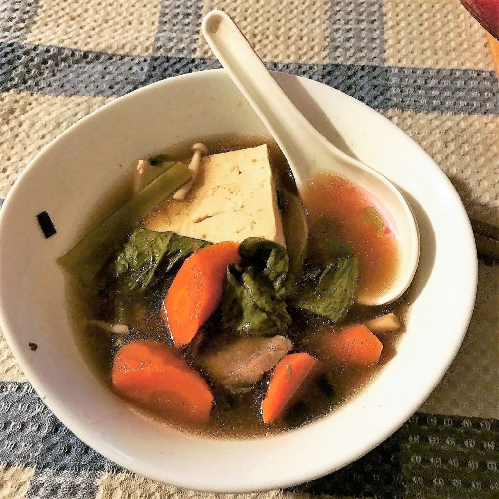 Because it’s delicious, that’s why! *laughs* Anyone can eat chanko-style food without ballooning to Ichinojo-levels, all you have to do is scale down your portions. Rikishi eat out of giant iron cauldrons while the two of us nibble from a medium-sized dutch oven. We skip the rice and beer and just enjoy the soup/stew as a soothing (and might I add, immune system-boosting) end to a long day ladled out in small bowls.