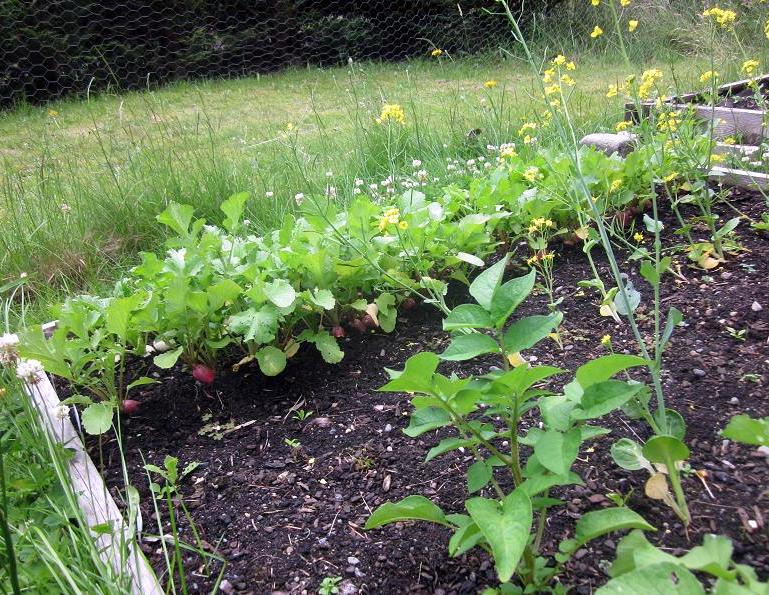 The radishes out in the garden started waving their red little bottoms in the air, so I decided it was high time to dig ‘em up. As I was loading this, first harvest of the summer into a basket I beamed like a proud parent, and excitedly (and morbidly, a bit like Saturn and his child) imagined all the ways I was going to cook them.