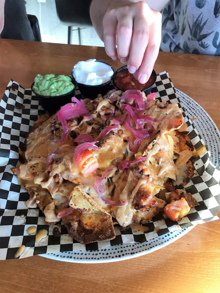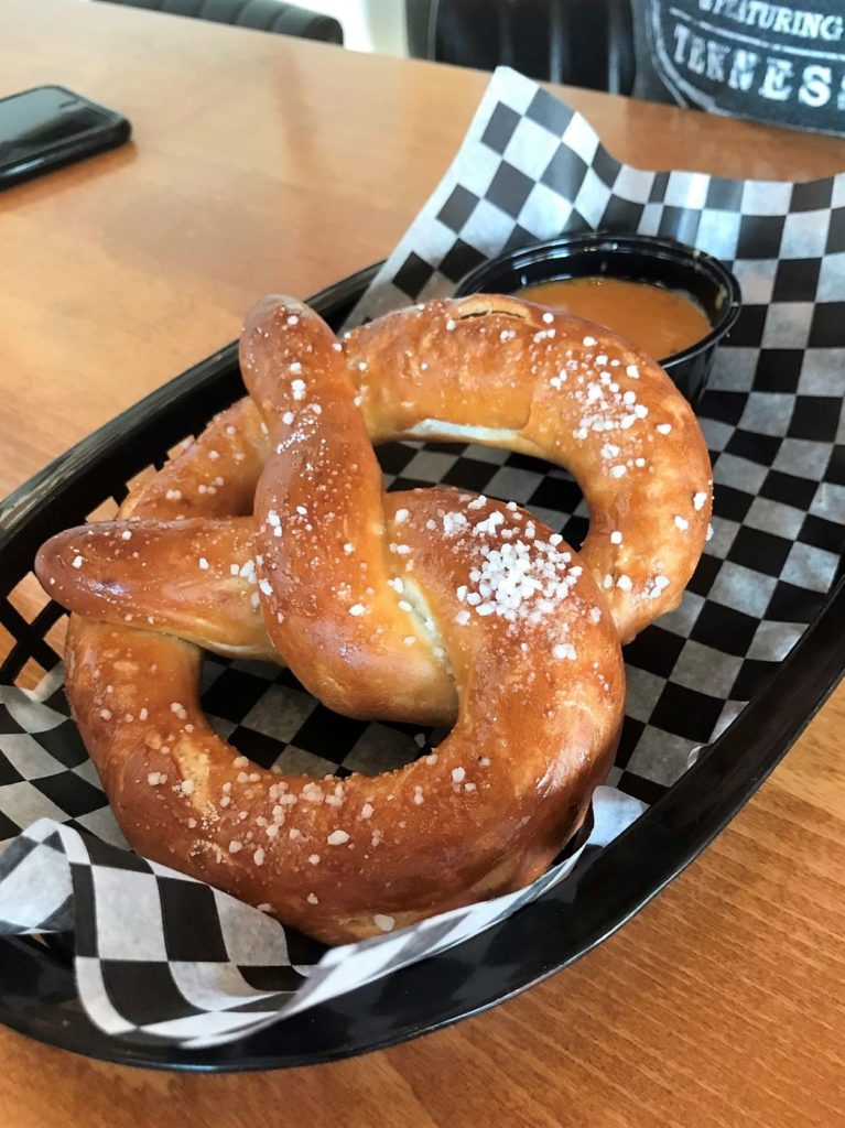 Alongside all this great beer we had a massive, warm and perfectly spungey pretzel with a house made beer and cheese sauce and an absolutely massive plate of nachos with shredded chicken, scorching jalapenos and all the fixings. Both were delicious and messy fun to eat.