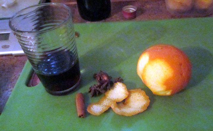 - Splash in the red wine (Fssshhh!) and bring to a simmer. Add the blackberries, cinnamon, anise and orange zest. Slap a top on and simmer on low heat for 10 minutes.