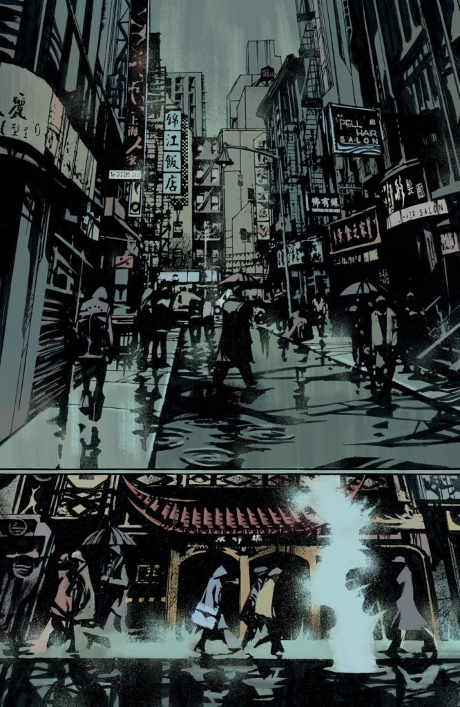 The art by Danijel Zezelj and Dave Stewart continues to blow my mind. The world is awash in shadows, etching every face, staining otherwise beautiful ingredients and filling the streets and alleys of this Gibson-eque future with menace. Love it, or hate it everyone admits it’s a very unique style… I’m definitely in love!