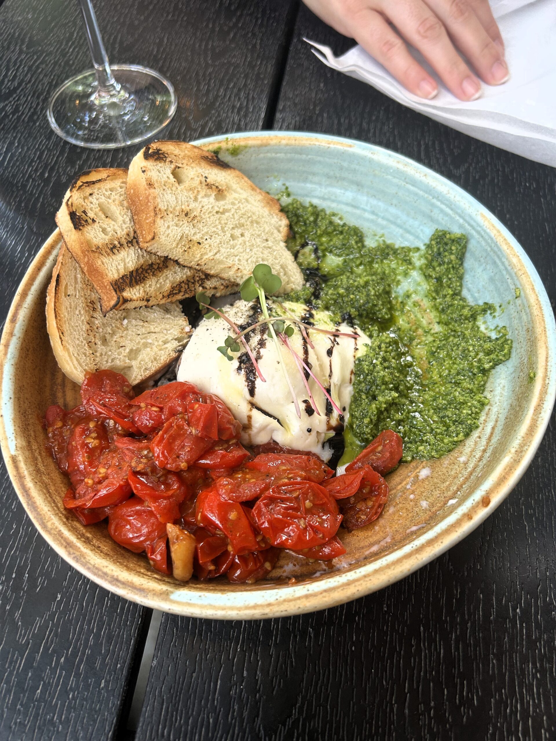 Case in point was our appetizer: A simple Burrata surrounded by it’s dear friends roasted tomatoes and pesto. Simplicity itself, except that the tomatoes where wood smoked and seasoned with an earthy funk I couldn’t quite identify and the pesto sparkled beyond just basil. The presentation elevated this little plate of antipasti staples into something fresh and fun. Che bontà!