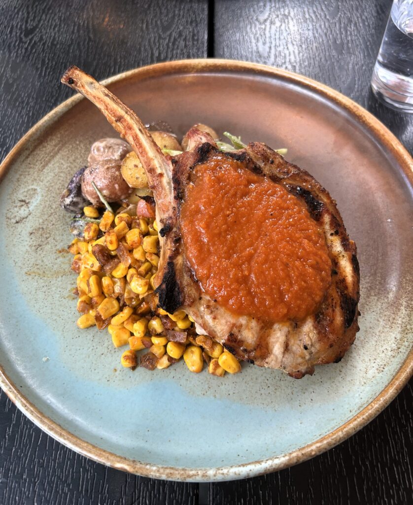 I went completely off the rails and ordered the BC pork chop with peach glaze, grilled corn and warm potato salad. It was perfectly grilled and was the juiciest pork chop I’ve had in recent memory. A really exceptional combination of flavours that brought to mind southern BBQ meets Italian trattoria. The accompanying Pinot Noir suggested by our server brought a warm, smokey note that further enhanced the plate.
