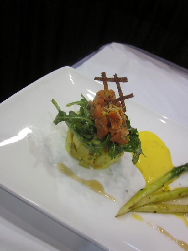 Across from the Sysco Foods display, the final round of the post-secondary school Chefs Competition was racing to a food network-worthy conclusion. Only ten minutes remained for six culinary art students to plate their dishes and await the judgement of their peers. The crowd, packed with friends, relatives and gawkers like me cheered and shouted encouragement (much to the dismay of nearby vendors, I’m sure). The bell rang, and the chef on the mike told the competitors to, “Step away from your plates!” and it was all over, time to find out who was going home with gold.