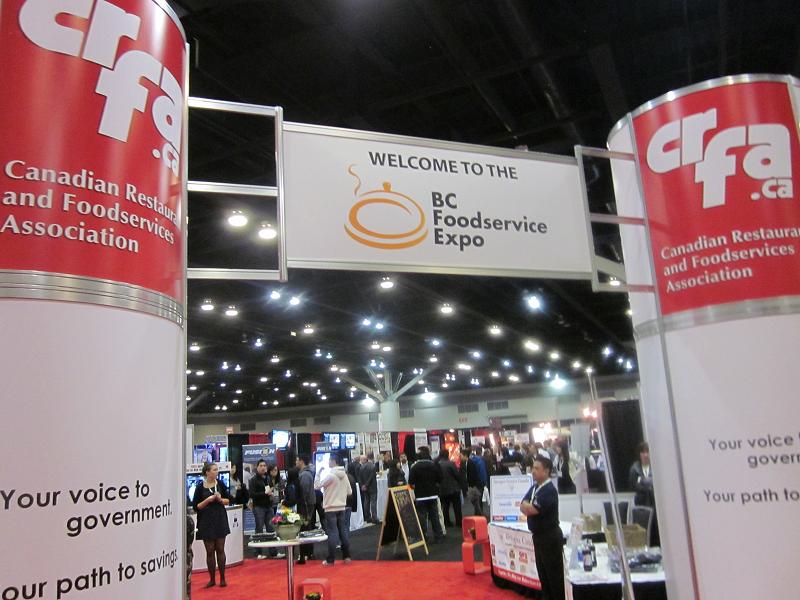 Last weekend Vancouver’s spiffy new convention center played host to a veritable pantheon of celebrity chefs, food product artisans and industry professionals. For a couple bucks you could spend a couple days nibbling handmade cheeses, haggling over sous-vide machines, watching local chefs out-garnish each other and wander around tastefully buzzed on local wines. The CRFA Foodservice Hospitality Expo was in town and my chef Hiro-san decided that we should, neigh, MUST be in attendance to represent Vancouver Island at this most prestigious (and network-able) of gatherings. It wasn’t hard to convince our mob of Kamikaze cooks to hit the mainland when “free booze” was mentioned.