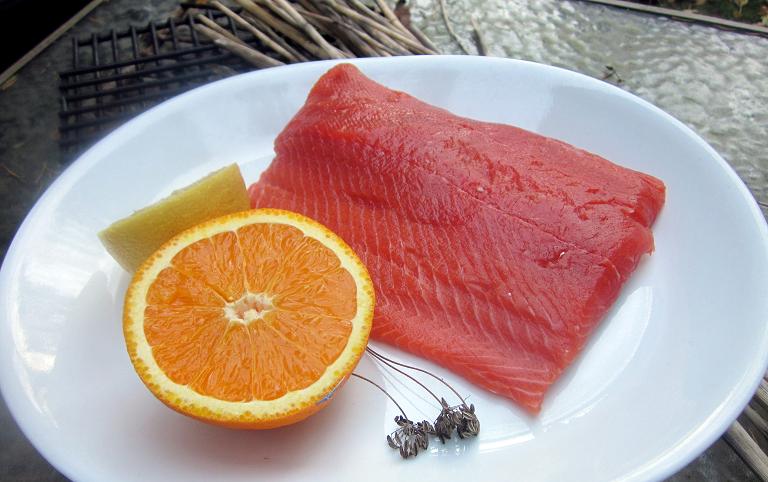 - Mix together the lemon ‘n orange juice, salt, fennel seeds and oil in a small bowl and pour mixture over the salmon. Rub it gently into the flesh, cover and refrigerate for 1 hour.