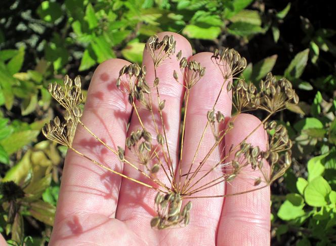 The once brilliant green stalks of fennel, caraway and dill that I planted in the early summer have browned, and will soon rot away under the relentless rain of a BC winter. I’m not one to let anything go to waste (especially something I can eat!) so I’ve gotten into the habit of collecting the seeds from these herbs and either saving them to re-plant next spring, or drying them for culinary use. These plants are all members of the Apiaceae (carrot or parsley) family and share a couple of traits in common that make ‘em simple to harvest.