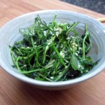 2. Whisk up the oil, orange juice, honey and salt in a small bowl. Cut the peaches into bite-sized portions and place into a large bowl with the bitter greens. Gently toss the peaches ‘n greens with the dressing.