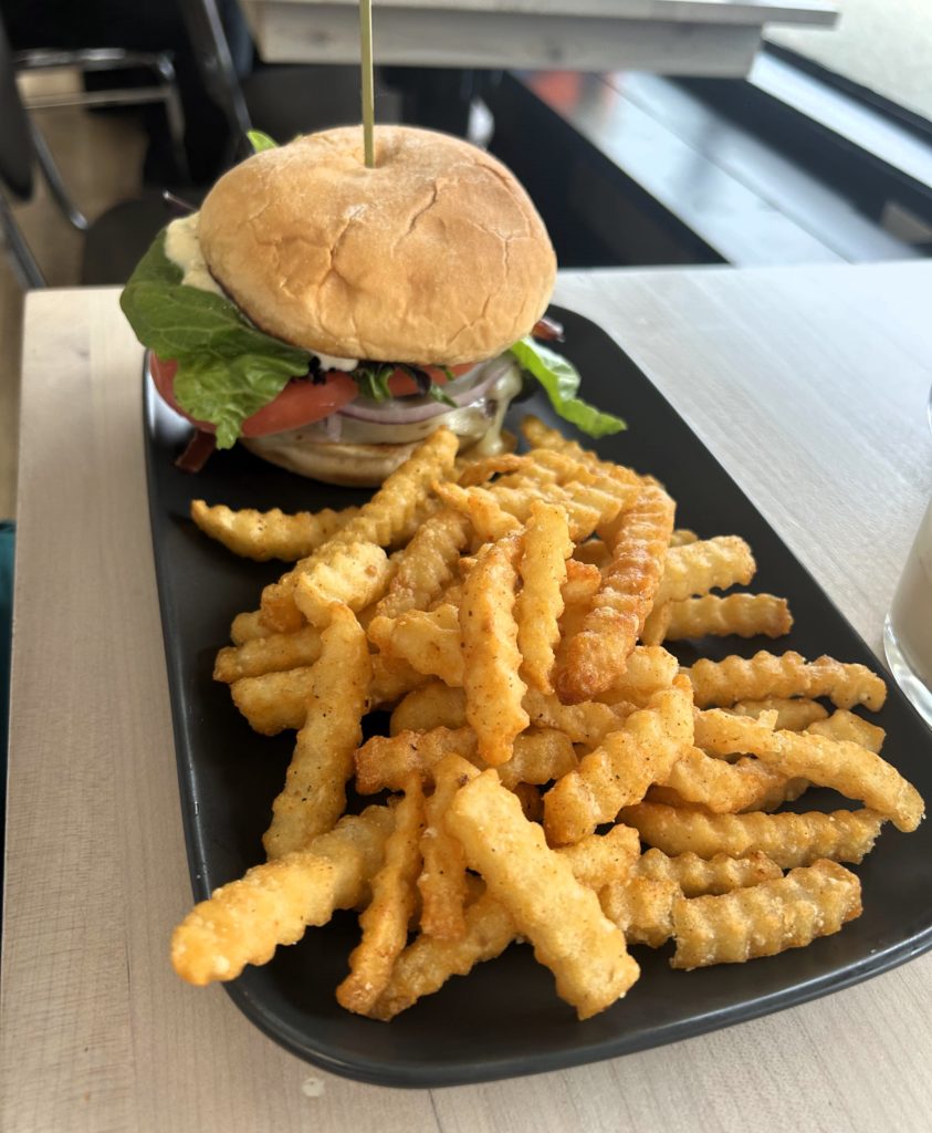 The coffee bar is great, the seating is perfectly situated to give both the illusion of space and the intimacy of long table-style dining. The décor is fun: I never got their peace sign logo until I started to see the collection of likely cheap and royalty-free peace sign art on the walls… Smart branding right there. The little cactus at each table still confuse me, but I’m not a deep thinker so give it time.