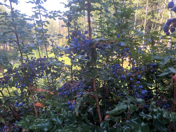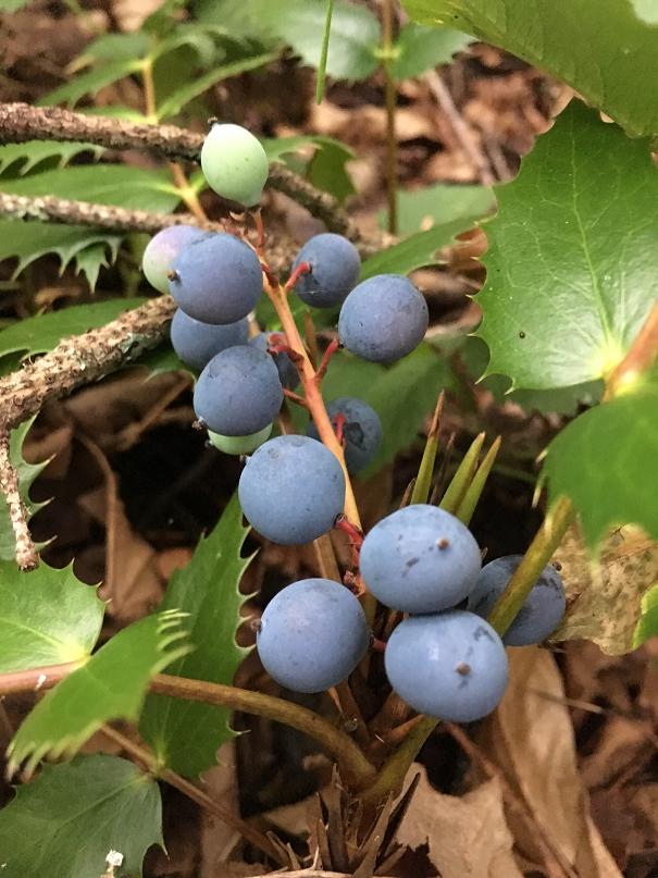 The bush can grow between three and five feet tall with long grayish-brown stalks and stiff, serrated green/red leaves similar to holly. In fact, it’s sometimes referred to as “Oregon Hollygrape” despite not being related to either grapes or holly. The “grapes” grow from little yellow flowers and ripen from July through September. These berries will grow through a multitude of colours (green, yellow, red and purple) before settling on a ghostly light blue when completely ripe.