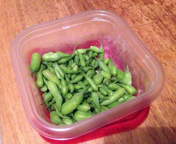 Armed with this knowledge, a little pair of scissors and a glass of wine I spent a very enjoyable afternoon trimming the edibles off of the radish stalks and into a couple of Ziploc containers. I trimmed the flowering tips off about an inch from the top, washed them very thoroughly and wrapped them in paper towel. The pods can be pinched off like a pea or bean and stored just the same. The remaining stalks went into the composter because of their super-fibrous texture.