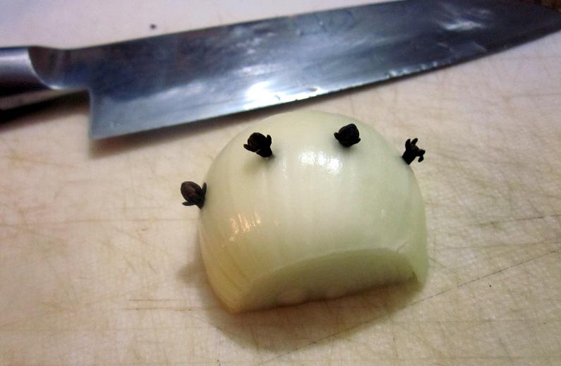 - Bring the milk and cream to a gentle simmer in a sauce pot over med-low heat. Plunk the studded onion into the pot and let it simmer away, infusing the milk with flavour for 15 minutes.