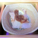The rest of Tojo’s customers, after getting nice and unwound with sake or Suntori do not order food from the menu at all. They smile at the sous chef and simply intone, “Omekase!” meaning “I’m in the chef’s hands” and let the kitchen staff choose their dining experience for them. It’s a very exciting, cool and… I ‘dunno… Civilized way to go about your dinner.
