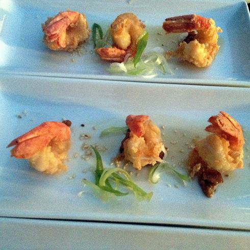 Everyone raised an eyebrow when chef McManus outlined his plan to fry 700 spot prawns and have them out fast enough to be served hot, but when it came time to plate all concerns had evaporated… By now, we were machines! Each small plate got a light brushing of maple syrup, dots of spicy mayo and a couple walnuts topped with the deep-fried prawns. Volunteers with good co-ordination and little fear ran the prawns down to the plating area from the tea house in big bowls and within a couple minutes all plates had gone out. The now-completely inebriated diners roared their approval between bites of crispy, sweet ‘n salty prawns.