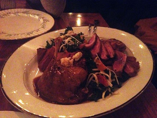 Jen and I split a whole B.C. duck platter featuring a confit’ed duck leg and perfectly seared duck breast each plus a beetroot and blue cheese lasagna and a big mess of crunchy curly kale salad with grapefruit. It was maaaaaaaaargggggh, so much fatty duck goodness! When the platter was laid bare, even of the little bits of kale, Jen stared across the table with a look of stupefied self-horror and hiccupped, “We ate a duck… A whole duck.” It reminded me of that scene from Hard Core Logo: